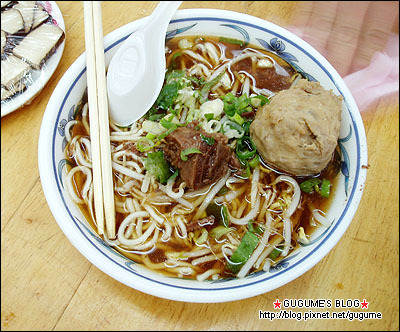 我們點了牛肉湯麵(肉丸是包括在內 但店家不知是不小心還是貼心的還多一塊牛肉)